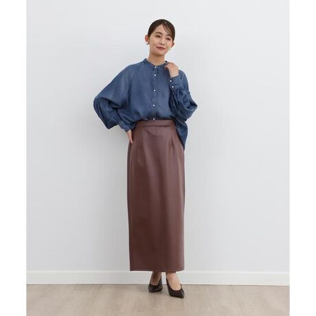 すっきりとしたバンドカラーにボリュームスリーブ+パールボタンで女性らしさをプラスしたシャツ。滑らかなタッチが特徴のテンセルデニム素材を使用しています。インでもアウトでも使いやすいジャストなレングスもポイントです。・水洗い可