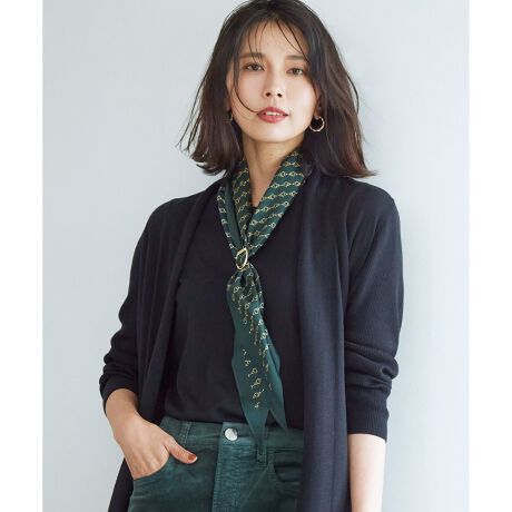 イタリアRatti社による23区オリジナルのチェーン柄プリントのダイヤ型スカーフ。クラシックな佇まいの、金具とチェーンをストライプのようにしたデザインと、シルク100%の上質な肌触りが魅力的です。首元に巻いたりバッグに取り付けたりなど、幅広いアレンジを楽しめます。また、同シリーズと組合わせたコーディネートもお勧めです。