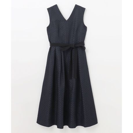 インポートならではの美しい素材に心惹かれる、特別感のあるドレス。イタリア“SILKOMO”(シルコモ)社の、綺麗なふくらみと立体感があるキカジャガード素材を贅沢に使用。すっきりとしたVネックに、スカートにはタックを入れて贅沢なフレアシルエットを表現しました。ウエストラインにはブラックリボンを添えて全体を引き締め、メリハリの効いたシルエットを表現。素材の良さを活かしたシンプルなデザインで、フォーマルな場面にぴったりな一枚に仕上げました。