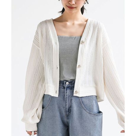 きらめくビジュライクなボタンがポイントになったカーディガン。