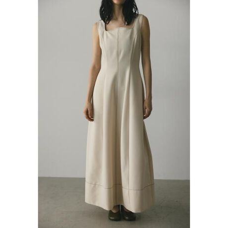 モデル身長163cm(Mサイズ着用)モードなカーブネックと緩やかなランタンフォルムがポイントのしっかり厚みのある素材感で仕立てたワンピース。バストからウエスト、裾にかけてのパネルパターンが抜け感のある美しいシルエットをつくります。一枚はもちろん、Tシャツやニットと合わせて長いシーズン着用して頂けます。透け感なし、ストレッチあり。【お手入れ方法】手洗い可