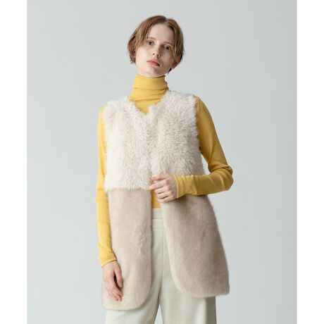 フェイクファーコンビニットジレ