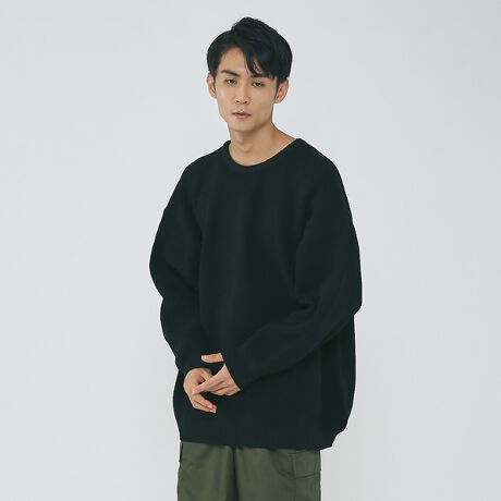 リラックス感を演出できるルーズシルエットクルーネックニット。