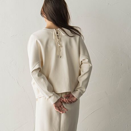 衿元のレースアップがポイントの前後2WAYアイテム。