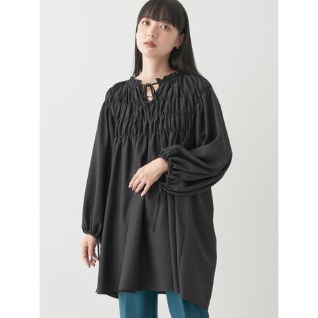 くしゅっとしたシャーリングが柔らかな風合いを演出するチュニック。
