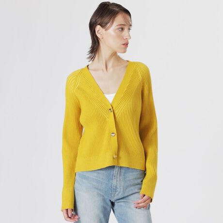 編み地切り替えで立体感のある表情が特徴のリブニットカーディガン