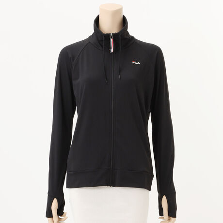 UPF50+のブロックメッシュ生地のラッシュは、袖口指穴仕様で、立ち衿デザインなので、首や手の甲を日焼けから守ります。胸元には、今人気のFILAのロゴ刺繍でさりげなくブランドをアピール。色目は、プレーンで普段使いも可能な黒・ネイビー・白と2色のパステルカラー。水に入っても普段使いにも便利な、夏には一枚は欲しい商品です。