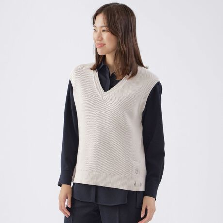 【ウォッシャブル】ストレッチコットンニットジレ