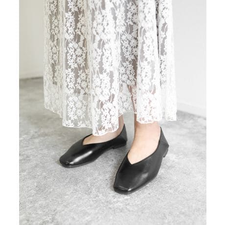 スクエアトゥVカットフラットパンプス