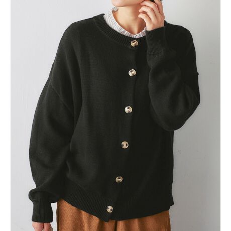 前開きしてカーディガンとしても!全部閉じてプルオーバー風にも楽しめるクルーネック♪