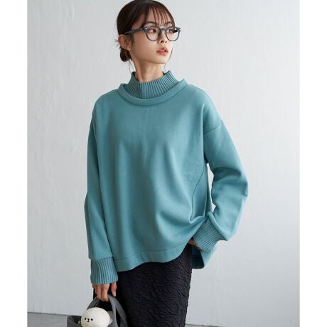リブニットドッキング裏起毛プルオーバー