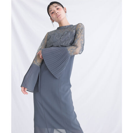 トップスの袖がプリーツデザインになった個性的なワンピース