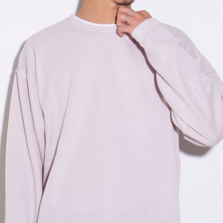 1枚でこなれた雰囲気を演出できるフェイクレイヤードプルオーバークルーネックロンT