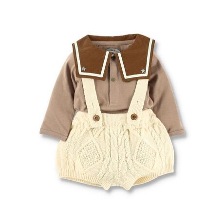 【ベビー】サスペンダー付きニットブルマ+ボディスーツセット