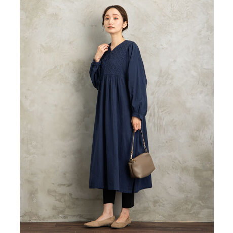【大きいサイズ】 15号(3L) ジオメキルティングヨークワンピース