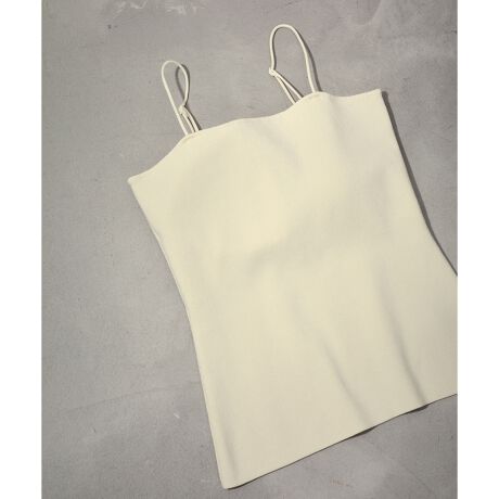 快適な着心地を叶えてくれるニットキャミソール。カップインデザインでインナーに悩まず着用できることはもちろん、詰まりすぎず開きすぎない絶妙なバランスの前開きや、華奢なストラップで鎖骨がきれいに見えるサイジングも魅力。幅広い骨格の方に対応できるよう工夫された、アジャスター付きデザインも嬉しいポイント。