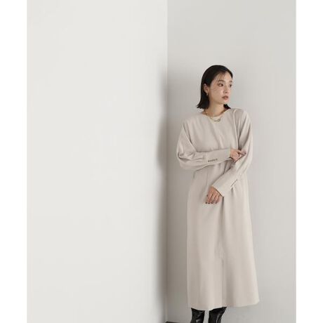 [design & styling]シンプルデザインが美しいナローシルエットを演出するドルマンスリーブワンピース。ハイウエスト切り替えとフロントシームディテールがさりげないポイントになって、スタイルアップして見えます。ドルマンスリーブのニュアンスあるフォルムシルエットがシンプルに見せつつ、トレンド感のあるバランスで着ていただけます。後ろファスナーで着脱[fabric]スポンディッシュな膨らみのあるキレイめ素材を使用。※スカートのみ裏地付き※モデルの着用画像の場合、光の当たり具合により、実際の色味と異なって見えることがございます。色味は、商品単体の画像をご参照ください。