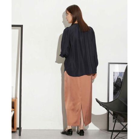 ・しなやかな光沢感がエレガントに映えるサテン素材のスカート