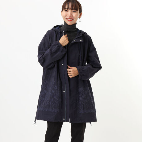 ほんのり微光沢のあるナチュラルなワッシャー加工を施したナイロンの生地を使用したフーディブルゾン。カジュアルながらもフラワーモチーフのボーラーレースをあしらってレディライクな雰囲気に。薄手で軽い素材感なのでロングシーズン着用可能です。