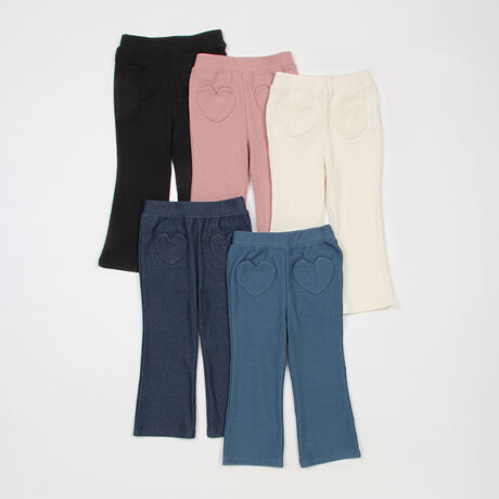 フロントのハート型ポケットが可愛いらしいパンツです。フレアなシルエットがスタイルアップを実現。シンプルなデザインで色味もワンカラーでまとめているので着まわし力が抜群です。フライス素材なので伸縮性が高く、ノンストレスに動けます。内側にはお名前を記入できるタグつき。【おすすめの着用時期は秋冬シーズン】【透け感】透けない【生地の厚さ】普通【伸縮性】あり【裏地】なし【ポケット】あり【アジャスター】なし
