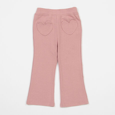 フロントのハート型ポケットが可愛いらしいパンツです。フレアなシルエットがスタイルアップを実現。シンプルなデザインで色味もワンカラーでまとめているので着まわし力が抜群です。フライス素材なので伸縮性が高く、ノンストレスに動けます。内側にはお名前を記入できるタグつき。【おすすめの着用時期は秋冬シーズン】【透け感】透けない【生地の厚さ】普通【伸縮性】あり【裏地】なし【ポケット】あり【アジャスター】なし