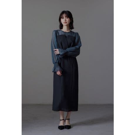 ビスチェ風デザインが可愛いシフォンとオーガンジーのコンビネーションドレス。
