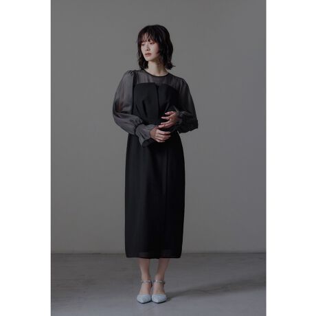 ビスチェ風デザインが可愛いシフォンとオーガンジーのコンビネーションドレス。