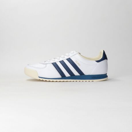 ホワイトとダークブルーが紡ぐ洗練の粋、伝統のスリーストライプススニーカー