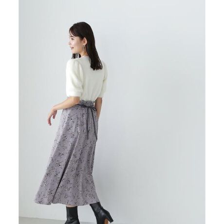 [design & styling]春夏に大人気だったスカートが、秋冬のムードにぴったりなカラーを揃えて再び登場!NBBオリジナルの小花柄プリントは、より繊細な柄にアップデートし、女性らしさを演出。ウエストから切り替えた微配色のサテンリボンがコーディネートのアクセントになり、ウエストまわりに華奢な印象をプラスしてくれます。秋のスタイリングに馴染むグレイッシュな濃淡のダークトーンの2色と、大人フェミニンなスモーキーなラベンダーベースの3色を揃えました。後ろファスナーで着脱[fabric]落ち感と肉感がほどよいジョーゼット素材を使用しています。※裏地付き※モデルの着用画像の場合、光の当たり具合により、実際の色味と異なって見えることがございます。色味は、商品単体の画像をご参照ください。