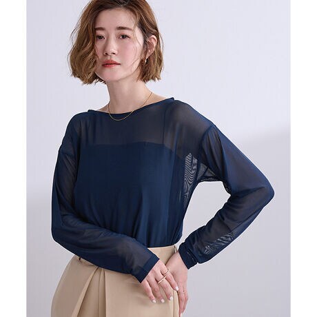 ボートネックで首周りのすっきり見えも叶えるシアープルオーバー。