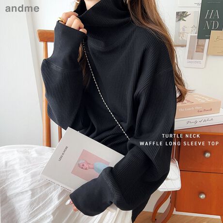 ワッフル タートルネック 長袖トップス