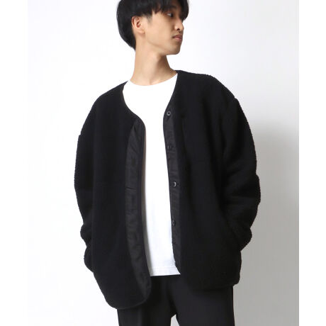 ビッグシルエット ノーカラー リバーシブル キルティングコートジャケット/裏ボアフリース