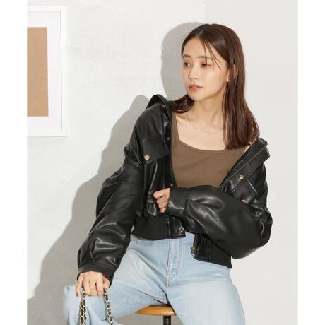 WEB限定/ライトウエイトクロップドフェイクレザーブルゾン