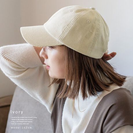 暖かみのある雰囲気のコーデュロイ素材のシンプルなキャップ。
