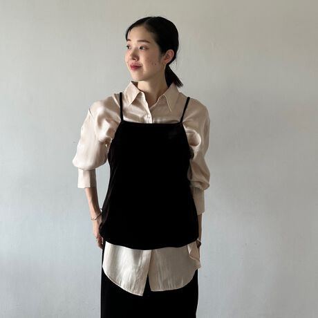 ・艶感のあるベロア素材をレイヤードも可能なキャミソールに