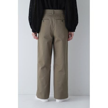 オーセンティックなチノパンツ。チノパンらしいメンズライクなウエストの作りでウエスト見返しはマーベルトで仕立ててあります。ミニフラップのコインポケットもポイントです。春からの継続商品です。今秋は新色のカーキを含めた3色展開です。