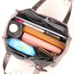 くったりとした柔らかなメタリック合皮のトートバッグ。