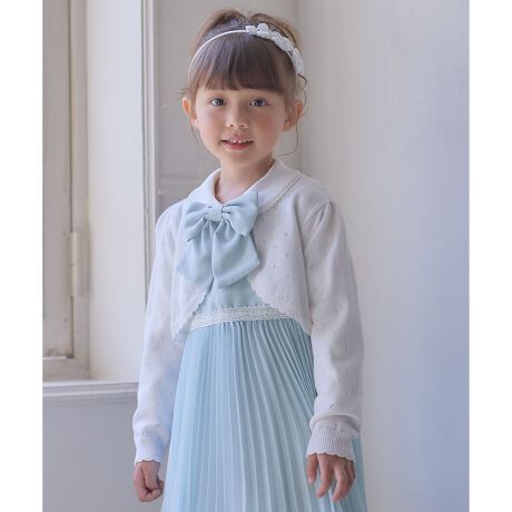 キッズ/長袖/ボレロ/ニット/オケージョン/羽織り/ボタン/スカラップ/人気/デイリー/女の子/ガール/サスティナブル商品/コスパ高/トレンド