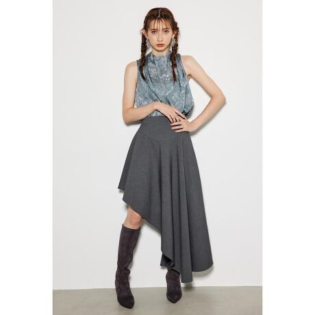 【大胆な斜めのカッティングがお洒落なフレアスカート】【Design】アシンメトリーな裾のカットがお洒落なフレアスカート。ハイウエスト仕様ですが、コルセット調のディテールを取り入れつつ、ウエストにしなやかに沿うデザインは見た目以上にウエストへのストレスが無く非常に着易いのがPoint。まるで中空糸を使用しているかの様な、程よい厚みが有りながらも、分量感に対して軽い仕上がりと、高級感溢れる表地は、さらっと羽織りやすいきちんとした雰囲気を演出してくれます。ミニ丈に挑戦したいけど抵抗感がある、そんな方に是非着てみて頂きたいアイテムです。ロングブーツやショートブーツ、合わせ方次第で雰囲気をがらっと変えられるアイテムです。Wボタンジレ(110GA630-0400)とのSETUP企画で、一緒にご着用頂くと、旬なスタイルが叶うアイテムとなっております。【Color】トレンド感溢れる淡い色味が華やかかつ上品なイエロー、大人っぽく女性らしさ引き立てるダークグレーの2色展開です。■透け感:無し■光沢感:無し■伸縮性:無し■裏地:有り