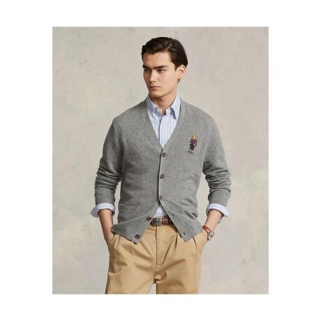 ウールで編み上げた薄手のカーディガン。ツイードジャケット、ケーブルニットセーター、コーデュロイパンツを着こなしたアイコニックなPoloベアの刺繍をあしらったアイテム。・レギュラーフィット:胸囲に余裕を持たせつつ、モダンなシルエットを維持・Vネック / 首の後ろの内側にフェイクスエードのパイピング / ボタン付き前立て・長袖、リブニットのカフス・フロントウエストに箱ポケット2つ・左胸にPoloベアとPoloの刺繍入り・リブニットの裾・モデル身長185cm、着用サイズM※商品の色味は、光のあたり具合など諸条件により色感が多少異なって見える場合がございますので予めご了承下さい。 【素材】・本体:毛 100% パイピング:合成皮革【生産国】ベトナム