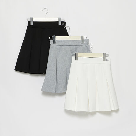 もちっと弾力のある素材でキレイめにもカジュアルにも使えるスカパンです。ボックスプリーツデザインでトレンド感をアップ! フレアなシルエットが女の子らしさを倍増してくれます。ウエストはアジャスターゴムでサイズ調節可能。インナーパンツつきなので、アクティブに動きたい日にも安心して着用できます。【おすすめの着用時期は秋冬シーズン】【透け感】透けない※c/#03オフはやや透ける【生地の厚さ】普通【伸縮性】あり【裏地】あり【ポケット】なし【アジャスター】あり