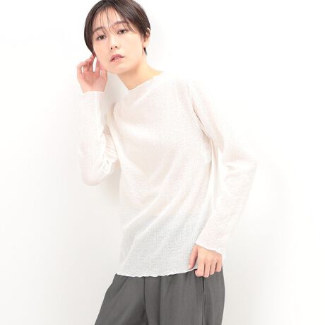 楽し気なくしゅくしゅ素材で仕立てたプルオーバーです。