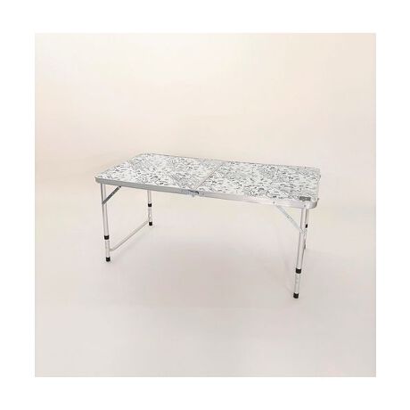 組み立て簡単でハイスタイルとロースタイルの2段階調節可能な折りたたみテーブルです。サビに強いアルミ素材を使用、雨や飲みこぼしなども安心です。コンパクトに収納でき、持ち手付きで持ち運びも便利です。■使用時サイズ(約):H55cm/H60cm/H70cm-W120cm-D60cm