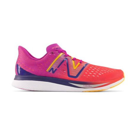爆発的な推進力を生むスピード重視の男性用レーシングモデル「FuelCell SUPER COMP PACER」。アーク(弓型)状のカーボンファイバープレートと空洞を設けた高反発なFuelCellのシナジーで、エナジーリターンを最大化するENERGY ARCを搭載し、シャープな薄底シルエットをアグレッシブカラーで鮮やかに彩りました。10Kからハーフ、駅伝に挑むランナーの走りに加速度をつけます。