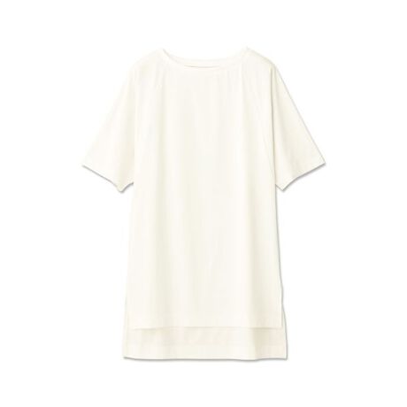 吸汗速乾、UVケア(UPF15-30、紫外線カット率85%以上)機能を付加したストレッチ素材。独特のハリ感があるきれいな表面感と軽さが特徴のロングレングスTシャツは、ワークアウトからデイリーまでさまざまなシーンに幅広く使えるおすすめのアイテムです。また、衿ぐりには別素材のリブを使用しポイントにしています。レギンスに合う丈にしており、サイドのスリットと前後差がポイントです。衿ぐりはボートネックですっきりさせました。