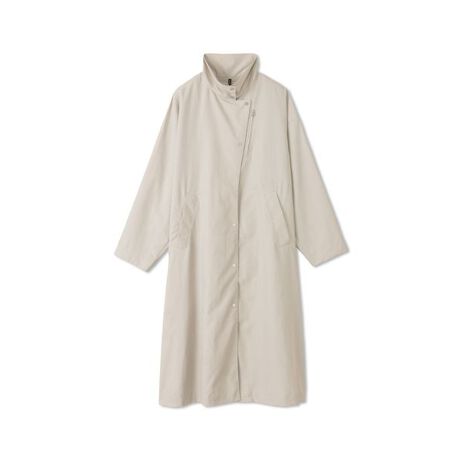 UVケア(UPF15-30、紫外線カット率85%以上)、撥水機能を持つ天然素材のような風合いの軽量コート。一枚仕立てで、身頃や袖はゆったりめのオーバーシルエットです。フロント開きはアシンメトリーなデザイン、胸にはファスナーポケットがついていいます。デイリー・スポーツなどシーンを選ばずに着用することができるアイテムです