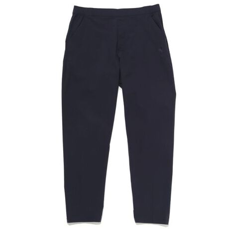 ■素材/ポリウレタンでは表現できない、軽量感としなやかなストレッチバック性を持ったはっ水クロス素材です。 ■着用シーン/ジョギングやウォーキング、デイリーユース ■デザイン・機能/【シルエット:テーパード】デサント社の独自研究により生み出されたエアスタイリッシュパンツは、空気抵抗を軽減しパフォーマンスを向上させることを目的に開発された「ミニマリズム理論」を基に設計しています。元々は空気抵抗を軽減するために減らした縫製箇所ですが、これは縫い止まりの要因にもなります。生地本来のストレッチを最大限に引き出し、動きやすさや着心地の良さを向上させるため、ステッチ(縫い目)をそぎ落としながらも、最小限の縫製で立体的なパンツを実現しました。全体のシルエットはやや細身のテーパードですが、ヒップ構造は日本人の体型に合わせたゆとりのある設計です。ウエストはゴム入りかつ紐付きで、サイズ調整が自在です。左右に腰ポケットとヒップポケットを配置。ロゴを同色で配置することで、着用シーンを選びません。スポーツメーカーならではのテクノロジーを駆使しつつも、日常的に着用できるようミニマルにデザインされた定番パンツです。