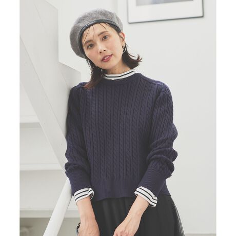【洗濯機可】クロップド丈ケーブルニット