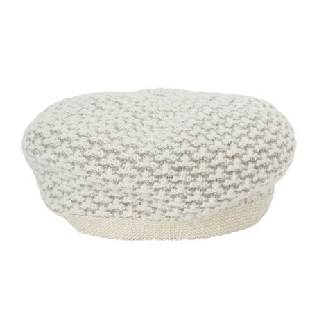 ツイード風のかわいい柄が編まれたニット素材のベレー帽です。伸縮性があるので被りやすく、暖かな素材で防寒にぴったりです。