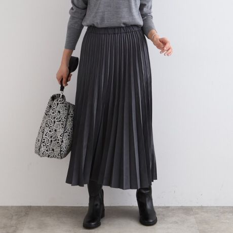 スエード調の起毛と程よい光沢感が上品な印象で着ていただけるプリーツスカートです。
